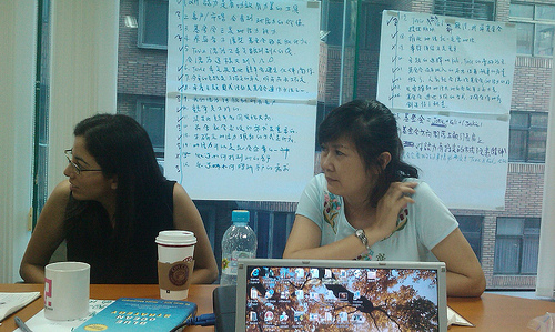 開放智慧公司總經理Laura Hsu和LOLO 林佩倫引導師,8月份為朝邦基金會進行藍海策略討論。
