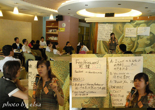 前饋活動:1.選定自己想要改變的目標 2.找一個同伴請求建議 3.直覺的接受下來
