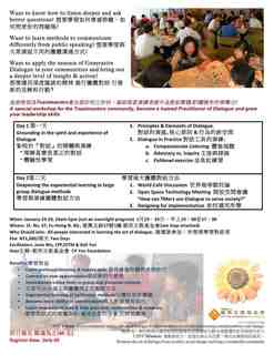 在此學習如何尊重、聆聽,如何問更好的問題,如何運作深度匯談引發新的見解和行動 進而協助大家從演講者提升為對話實踐者,更能擴展領導力