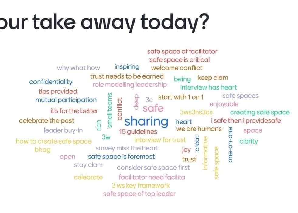- How do you create a safe space and make it real? Share your intention, be genuine and speak your mind.