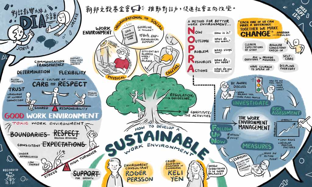 The CP Yen Foundation’s September “Power of Dialogue” webinar focused on the topic “How to develop a sustainable work environment”, with experience sharing by Roger Persson, a work and safety consultant in Sweden since 2003, and Keli Yen, a sustainability and management practitioner since 2004.